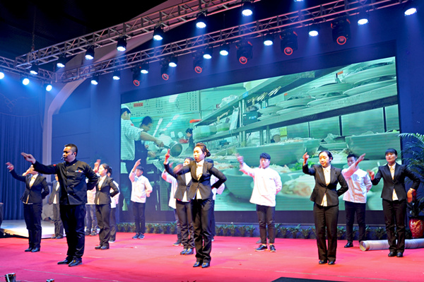 迪尼斯酒店伊川店后廚員工帶來(lái)的“走心小品”《傻大個(gè)成長(zhǎng)之路》。伴隨著開元集團(tuán)不斷的發(fā)展壯大,我們的員工也在快速成長(zhǎng),還有幾天就要過(guò)年了,但是他們已經(jīng)做好了在酒店備戰(zhàn)年夜飯的充分準(zhǔn)備,他們敬業(yè)、奉獻(xiàn)的精神值得我們學(xué)習(xí)和尊敬。