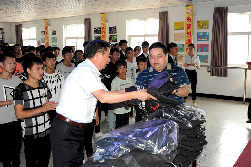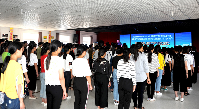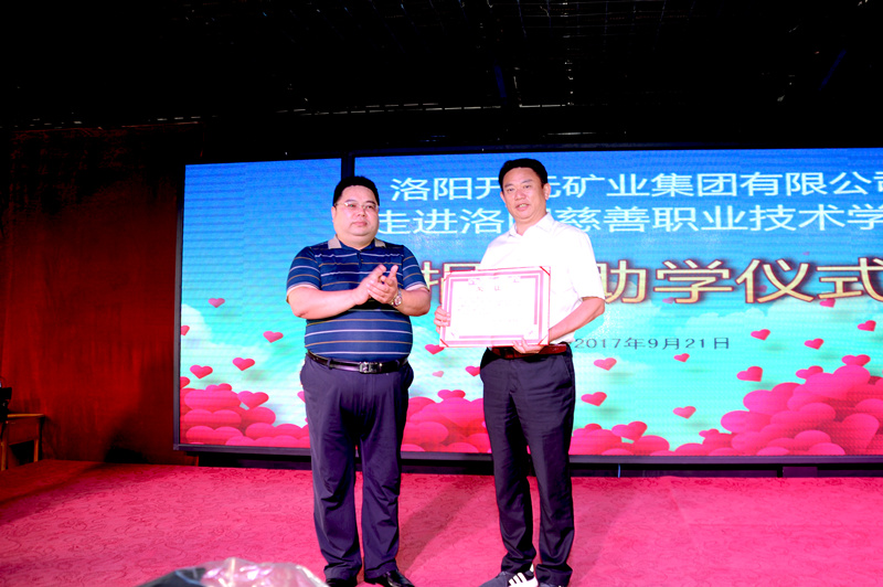集團(tuán)副總經(jīng)理?xiàng)畲荷砺尻?yáng)開(kāi)元礦業(yè)集團(tuán)向洛陽(yáng)慈善職業(yè)技術(shù)學(xué)校捐贈(zèng)新生校服西裝,洛陽(yáng)慈善職業(yè)技術(shù)學(xué)校賈國(guó)彪校長(zhǎng)為洛陽(yáng)開(kāi)元礦業(yè)集團(tuán)有限公司頒發(fā)榮譽(yù)證書(shū),并向全校師生展示新校服。